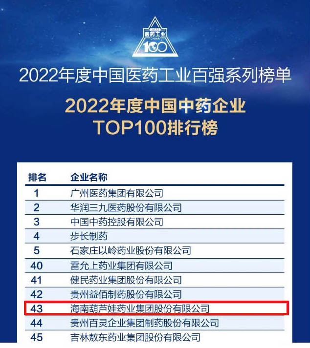 会议期间,一年一度的中国医药工业百强系列榜单隆重揭晓,六合联盟药业集团凭借领先的研发优势和扎实的生产实力以及稳健的市场推广能力,连续第四年成功入选“2022年度中国中药企业TOP100排行榜” ,排名稳步上升至第43位。